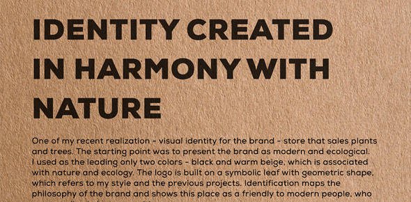 这是为销售植物和树木的商店做的VI。设计时只用到黑色和温暖的米黄色两种,标志是建立在一个象征叶子的几何形状上。