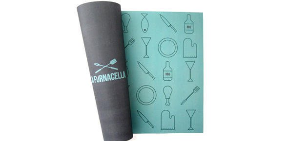 这个文件夹里包含了各种为“Furnacella”餐厅设计的宣传材料。它由Francesco Pesce设计,黑色和亮绿色主宰了整个视觉识别系统。