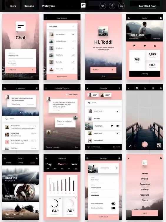 但因为是斜放的界面,所以不可避免的会让部分界面设计挡在版面之外,比如像图2的左下角的界面,只露出了非常少的一部分设计,其他部分都看不清楚,这个是斜放界面的一个缺点。大家在使用该方式表现效果时,布图需要谨慎一些,尽量把最重要的界面放到中间部分,其他界面再排到周围,会比较合适。